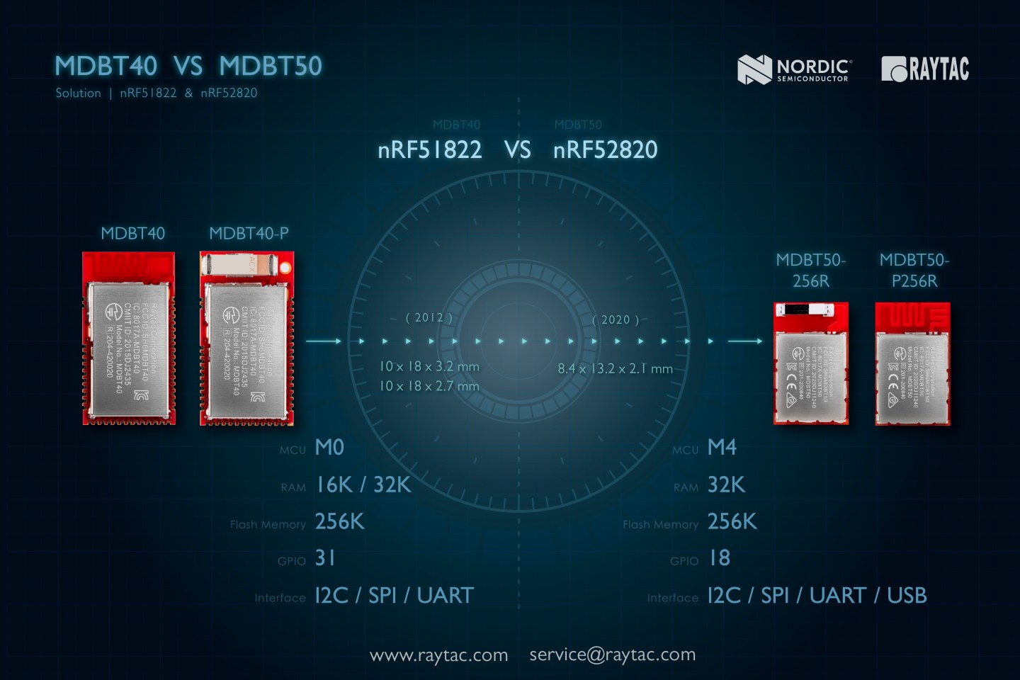 Raytac released MDBT50 series module which deployed Nordic latest nRF52 member, nRF52820 solution. nRF52820’s specification looks similar to nRF51822, but offer superior features than ever.