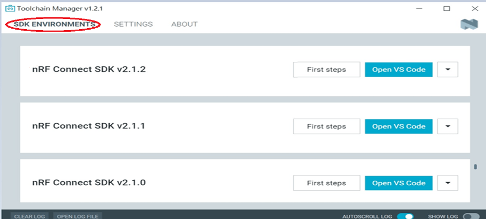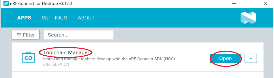 Activated your “nRF Connect for Desktop”  >> “Toolchain Manager” >> “Open” >> “Install”