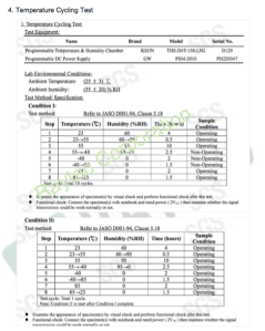 The Reliability test is following JASO D001-94, Clause 5.12, and testings are under below 3 environments.